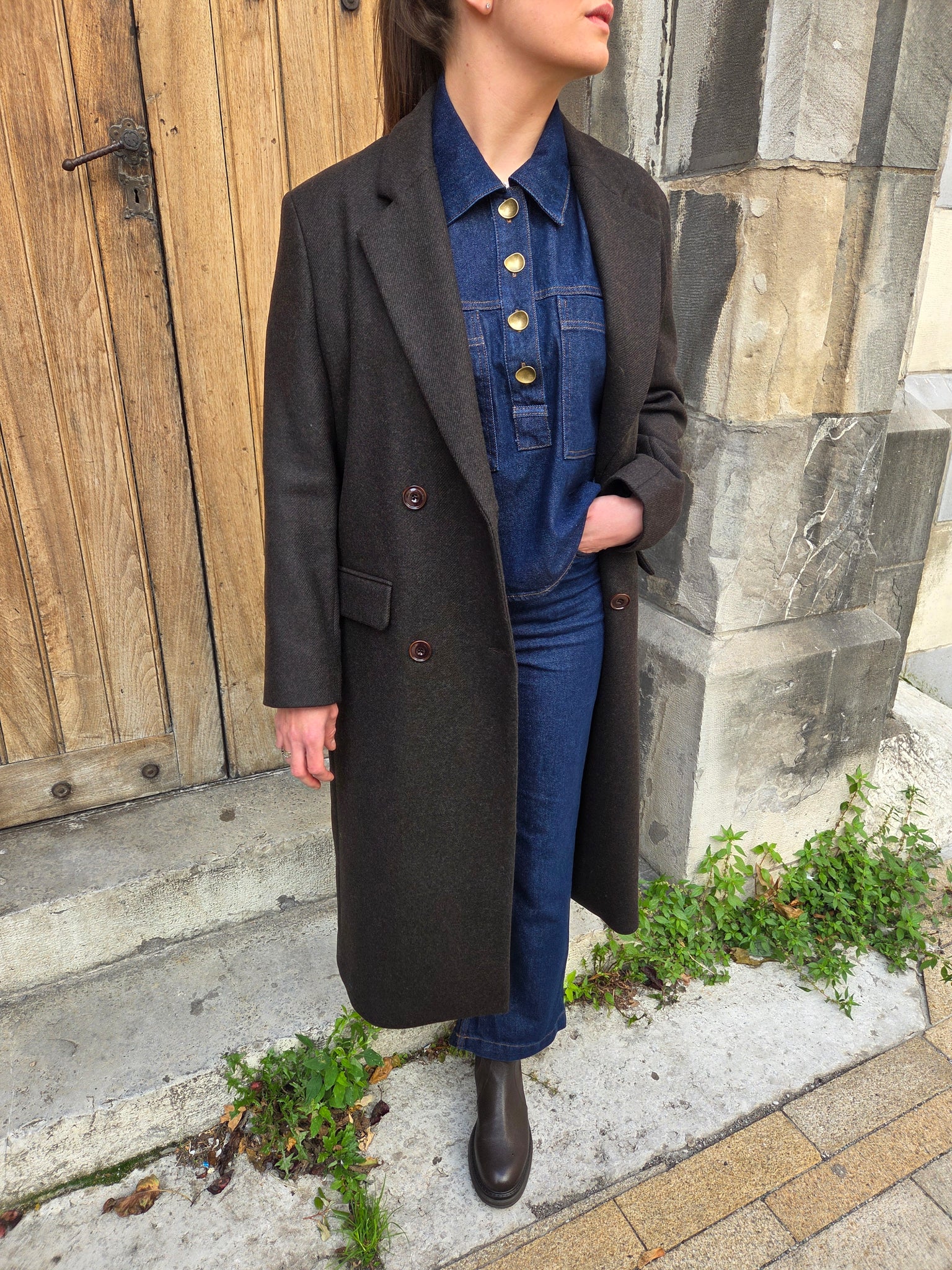 -Poches plaquées à surpiqures contrastées, détail de plis plats au dos