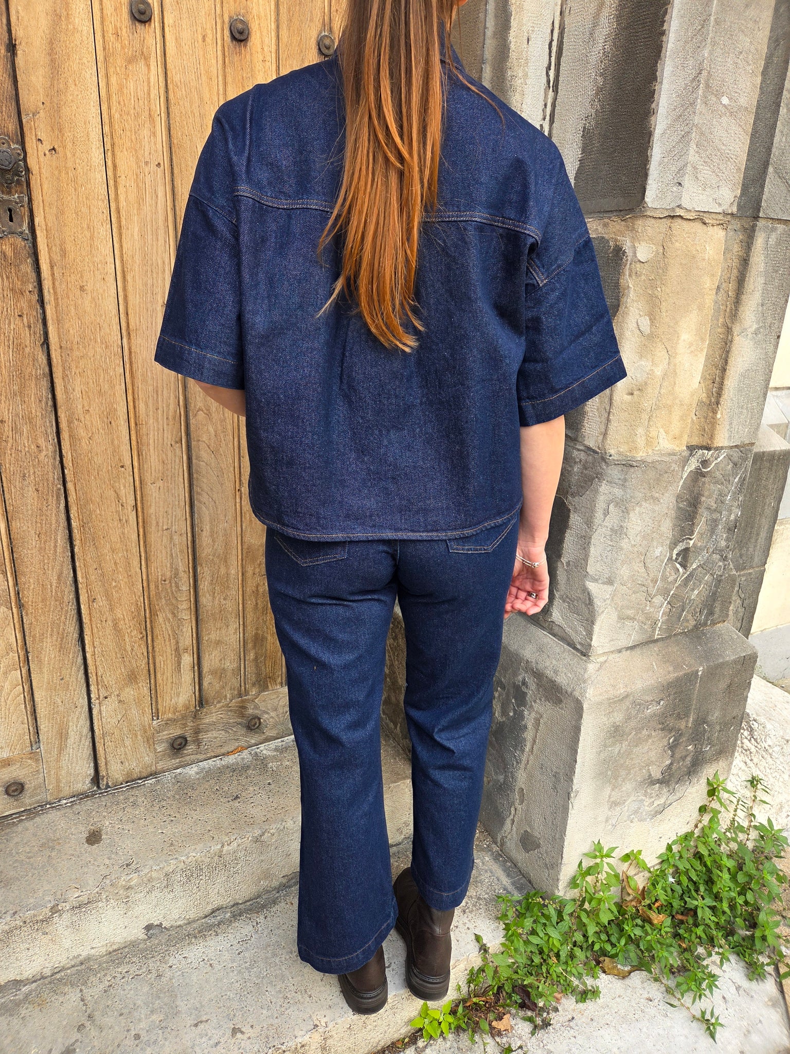-Taille mi-haute, longueur cheville, surpiqûres contrastées