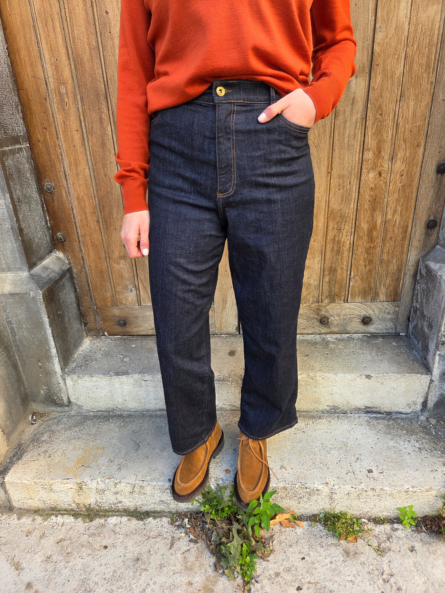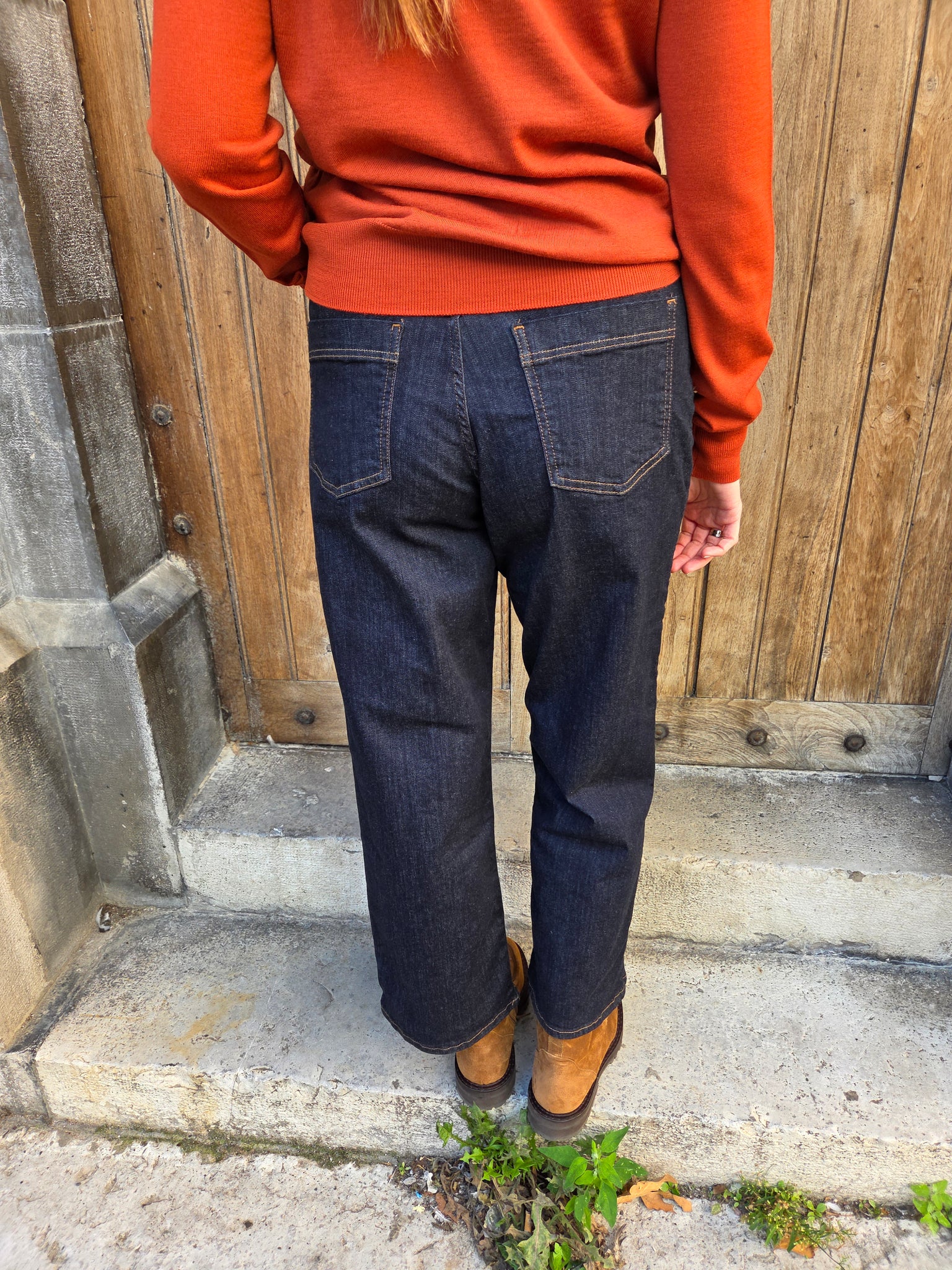 -Jacron en cuir au dos embossé "Sessùn Blue".